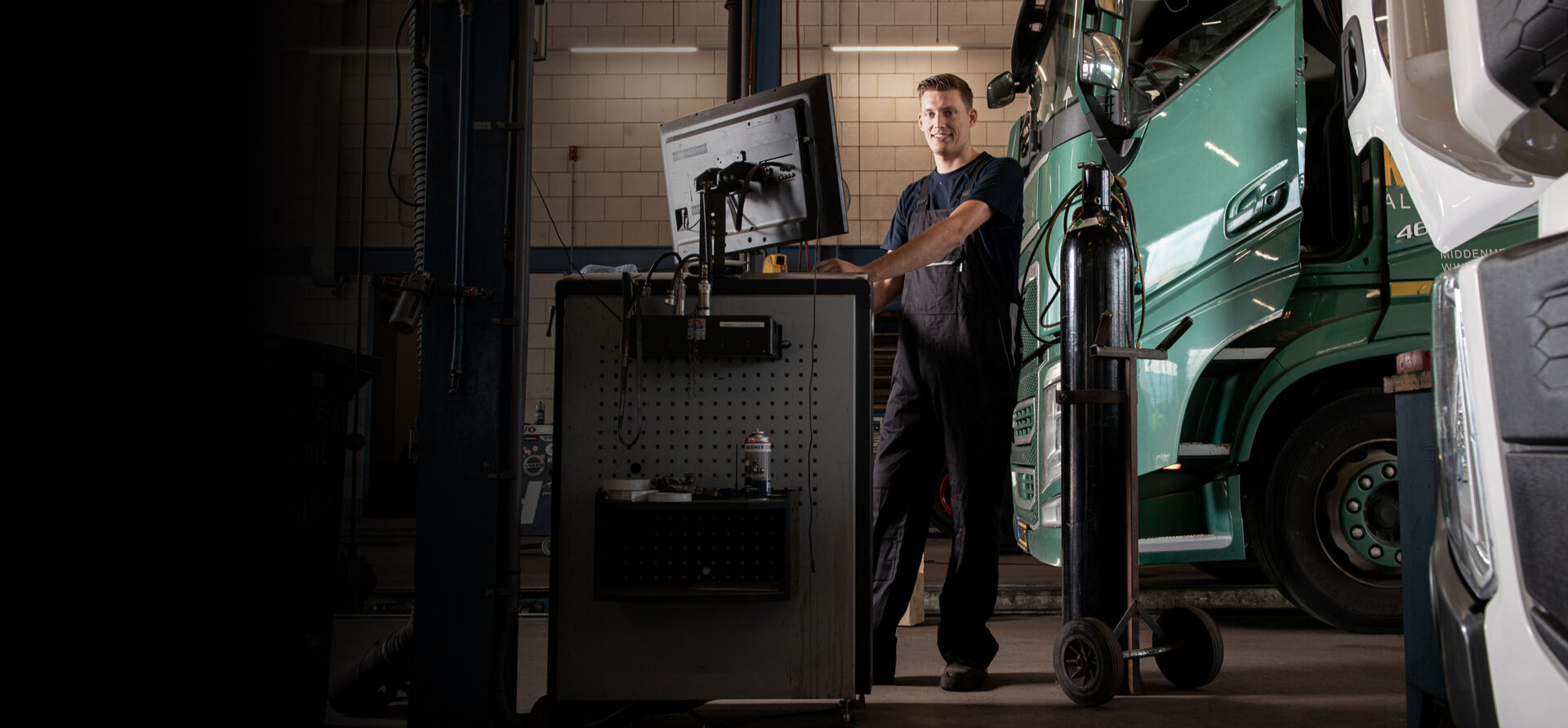 Het leukste aan mijn werk? Dat is de grote afwisseling qua werkzaamheden. Als technisch specialist is geen dag hetzelfde. Het ene moment ben je bezig met een reparatie of onderhoud, een paar uur later voer je een APK-keuring of een tachograafijking uit. Het meest enthousiast word ik van het oplossen van storingen. Als een truck binnenkomt met een elektronicaprobleem, ga ik stap voor stap op zoek naar de oorzaak. Ik vind het een mooie uitdaging om de storing te vinden en uiteraard op te lossen.